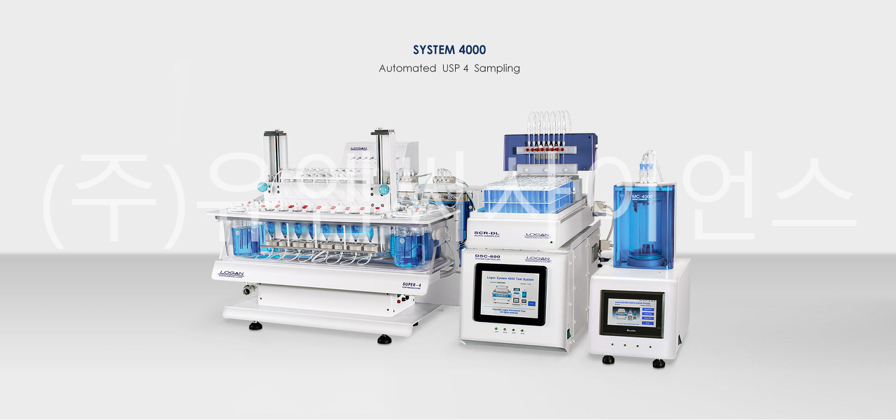 LOGAN SYSTEM 4000은 새로운 자동화 용출 테스트 방법(Dissolution Test Method)으로, M-800 media heating station, Flow-Through Cell, SCR-DL 샘플 콜렉터, SYP-8L-10mL dual syringe pumps, DSC-800 시스템 컨트롤러 등 5가지 필수 장치가 포함됐다.