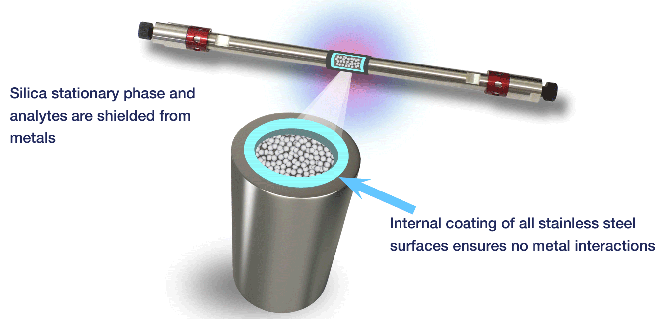 BIOMAX are passivated columns with a new bio-inert coating in order to prevent unnecessary interactions with peptides and proteins.