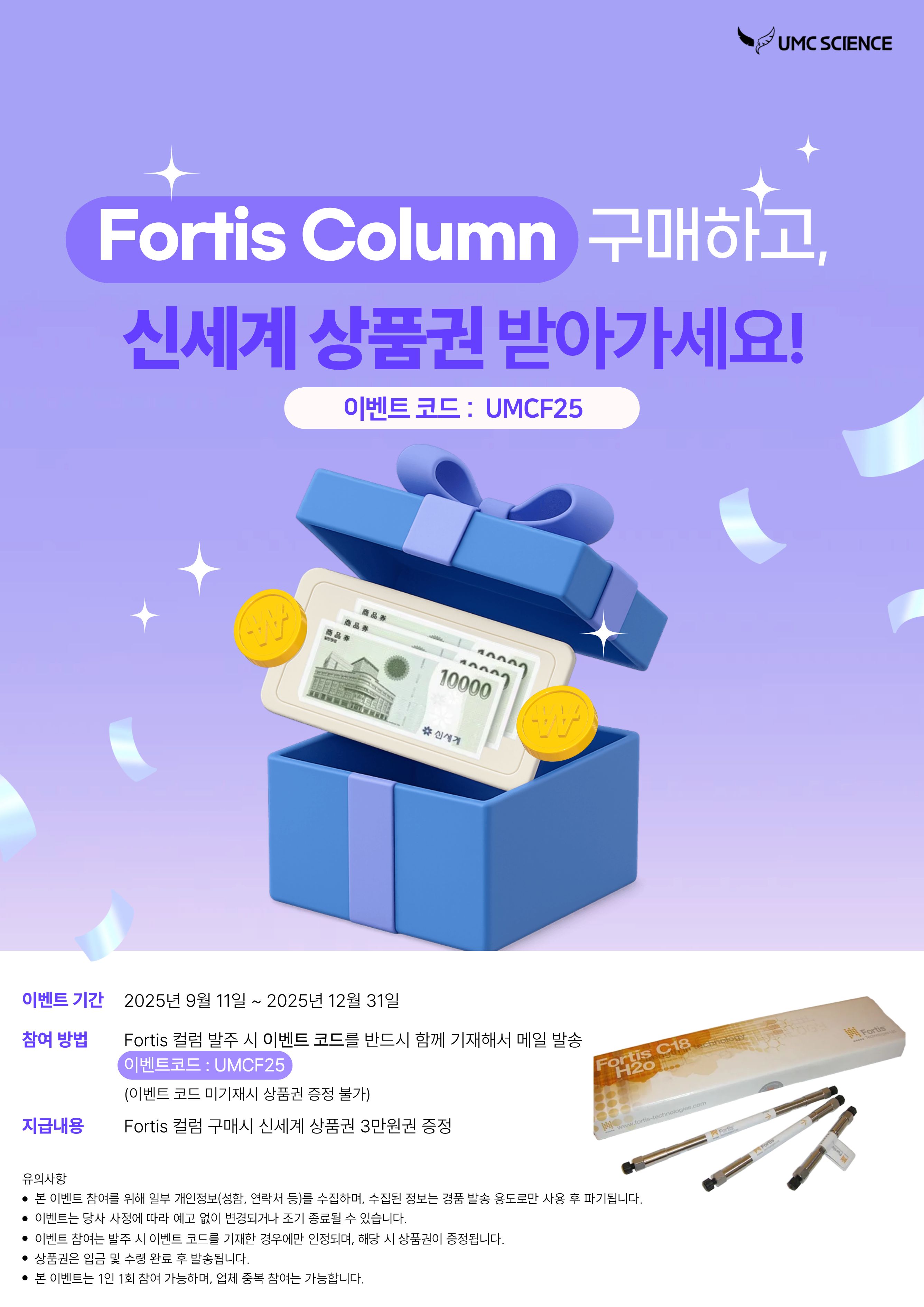 Fortis 컬럼 발주 시 아래 이벤트 코드를 함께 기재해서 메일 보내주세요.
